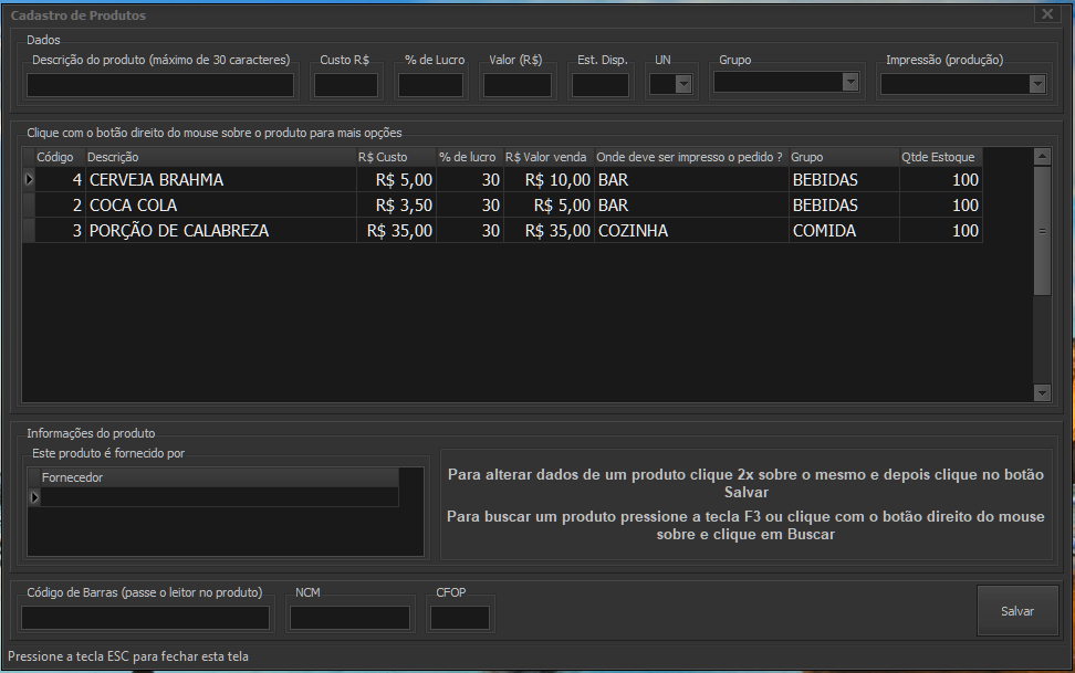 - Controle por Comandas: Os estabelecimentos podem gerenciar os pedidos dos clientes por meio de comandas, o que ajuda a organizar e controlar o consumo de cada mesa.